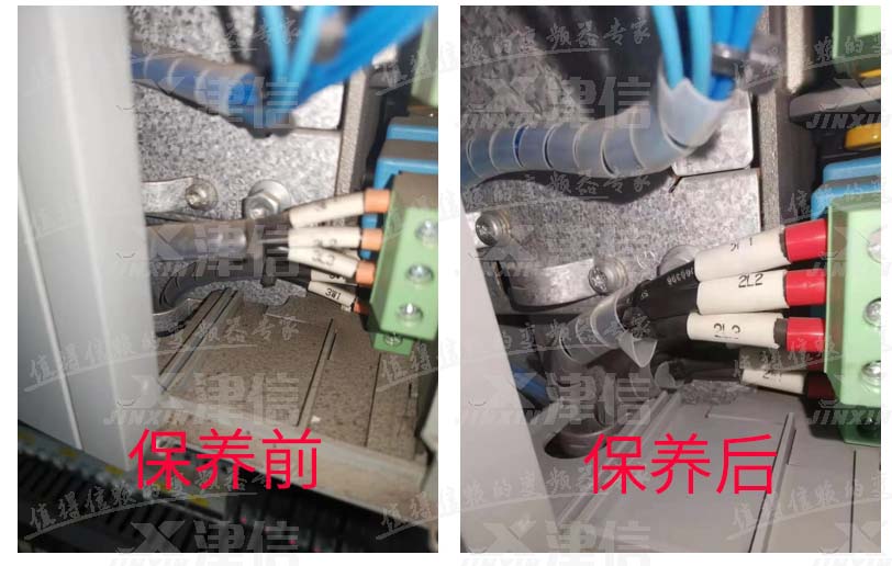 某食品飲料公司現有各品牌變頻器100多臺,由于變頻器長期使用,內部積灰較多,導致變頻器散熱情況較差,部分變頻器的端子接線不符合規范,通過維護保養,消除使用隱患,確保變頻器運行穩定。